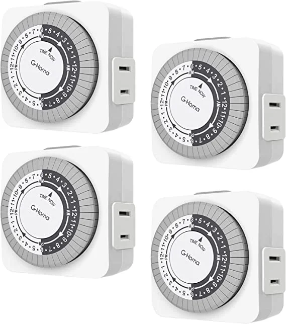 Analog timers are a bit old-school by today’s standards; however, various analog timer styles are still available. Some are spring-loaded, others involve placing pins in the on/off positions, and some function by depressing tabs. These devices do the job, but there is more room for error in using dials or pins to control timing compared to a digital display found on current 24-hour light timers.