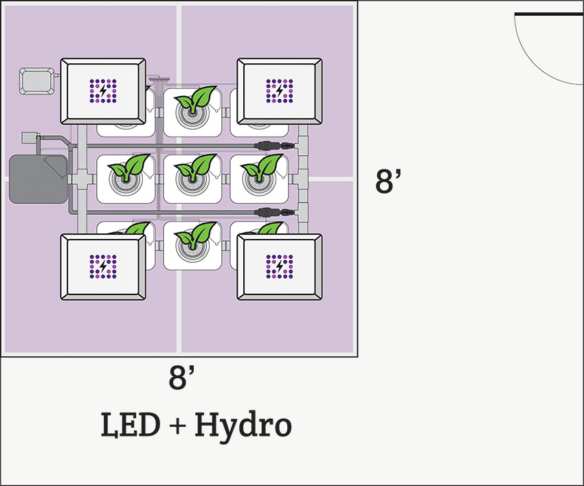 Since you have the extra space in this larger bedroom, you can afford to fill it with a hydroponic grow tent. An 8′ x 8′ grow tent can house 9 hydroponic plants.