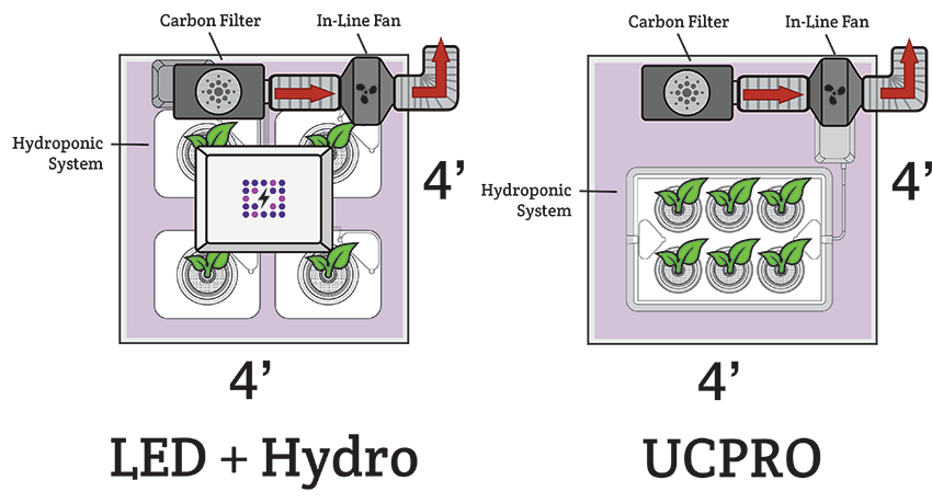 By adding in CO2 producers, like in the bottom two examples, you can supercharge plant growth, and drastically increase the weight of your harvest.