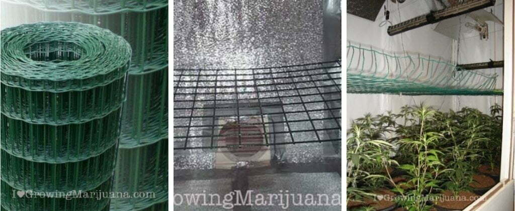 Next, cut a screen to fit the area of your grow room (or tent) and hang it, so it’s about 15 inches above your marijuana plants.